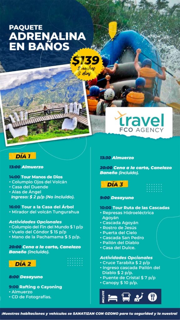 Nuestra estadía en Baños fue muy divertida !! el desayuno cumplió con mis expectativas , los guías turísticos fueron amables , divertidos , profesionales y con un carisma agradable . por lo cual les recomiendo reservar con ¡ HOTEL THUNGURAHUA & FCO TRAVEL AGENCY !